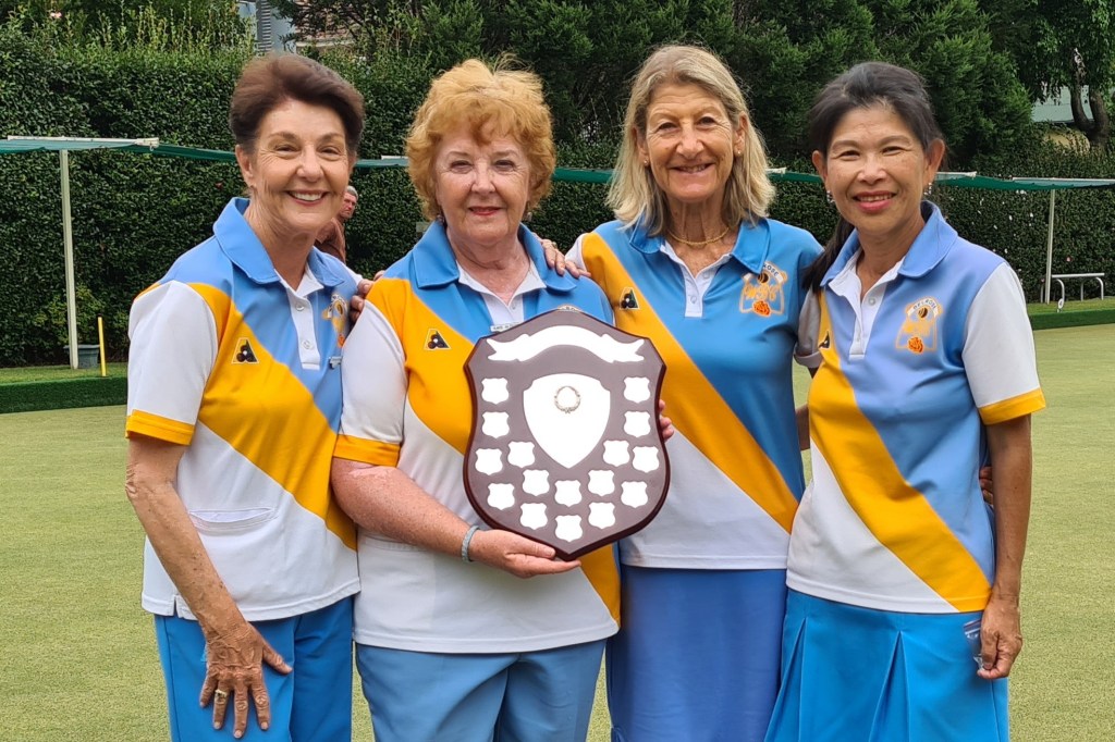 The 2023-24 Senior Women’s Fours in North Shore District are Jan Keller, Margaret Murphy, Julie Baker and Billie Maas (Belrose), who overcame the Neutral Bay team of Brenda Cook, Lea Eastaugh, Brenda Walker and Trish Wilson 18 – 11 in the final. The Belrose team made the better start, winning the first four ends for a score of 8-0. Then Neutral Bay began their fight-back and after 12 ends were only two shots behind, 11-9. However, from that point on, Belrose restricted Neutral Bay to a pair of singles, while they steadily took charge of the scoreboard to take the win 18-11.