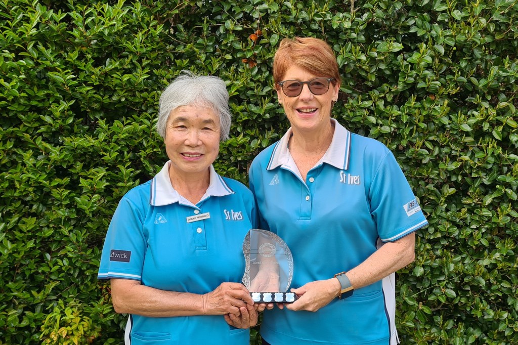 Shizuko Hashimoto (SUB: Jan Woodcock) and Di McBryde (St Ives) have won the Senior Pairs, defeating Lee Eastaugh and Cynthia Palmer (Neutral Bay) 23-16. Full results from all Rounds below: