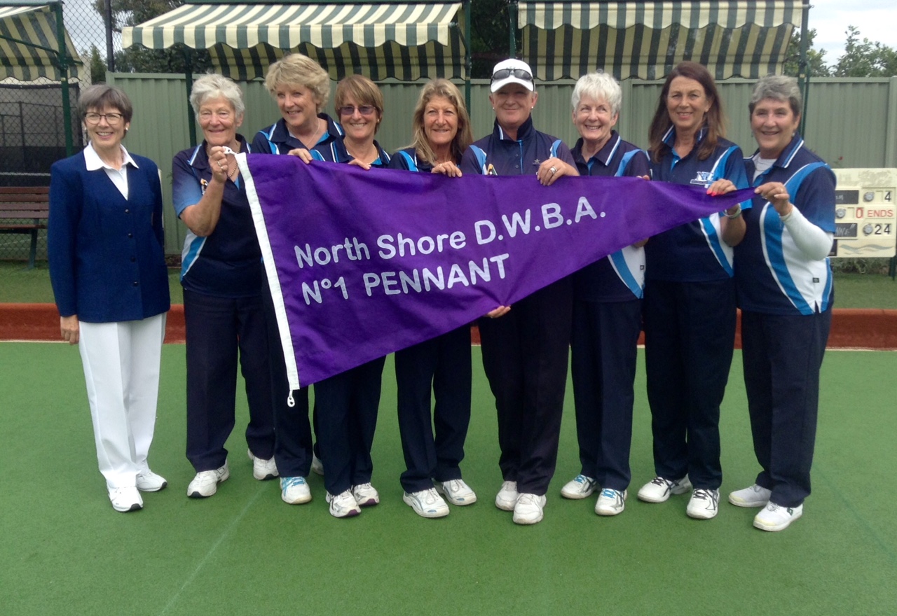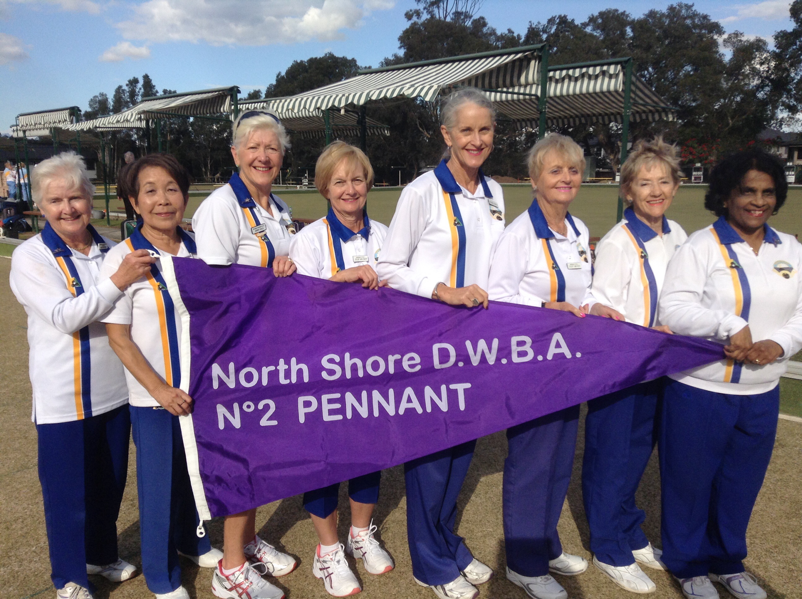 Mosman was presented with their Grade 2 Pennant badges and flag by Billie and Diane McBryde (Grade 2 Manager) on Tuesday 5th May. It was a special day at Mosman as it was also their 42nd Birthday Party. The Mosman side was Ann Barron, Toshiko Czinege, Jenny Hole, and Julie Hayden (skip,) Denise Owen, Judy Moyes, Trish Tamaoki and Jeyam Siva (skip).