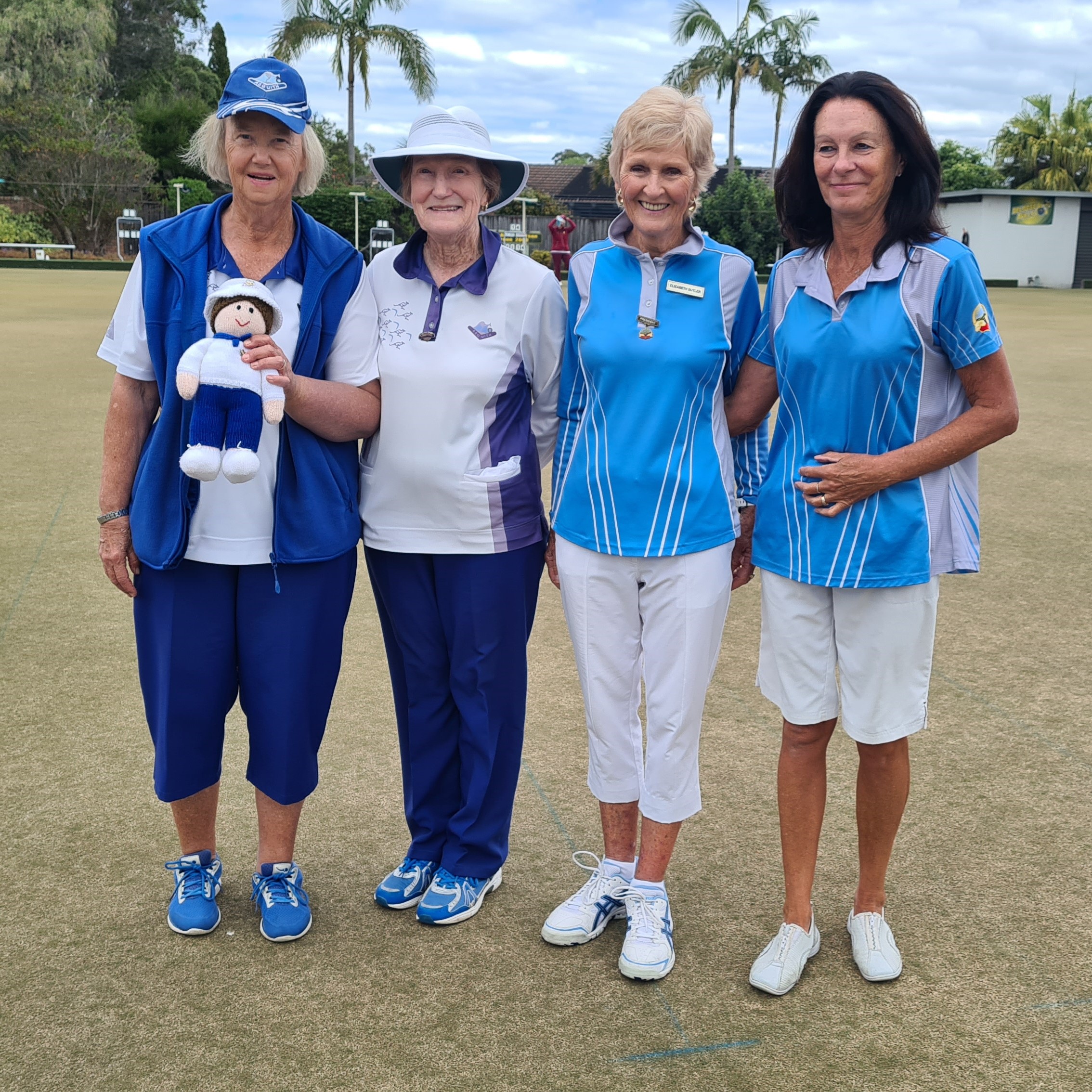 The Regional Play-Offs for the State Women’s Pairs and Senior Women’s Pairs were held yesterday at Belrose. In the State Pairs, the North Shore champions Di McBryde and Vicki Bartrop (St Ives) were up against last year’s Regional winners, Chris Gordon and Virginia Longfellow (Harbord). Harbord appeared to have the edge over their opponents for the first half of the match, out to an 8-0 lead after 4 ends and stretching their lead to 14-4 after 12 ends. However, a 4 to St Ives on the 13th end sparked some momentum for Di and Vicki, who followed up with 3 on the 14th then 2 on the 15th, to be only one shot behind 14-13! After 17 ends, there were still only two shots in it, with Harbord up 16-14. Chris and Virginia then stepped up a notch, securing multiples on the 18th, 19th and 20th ends to claim victory 24-14.