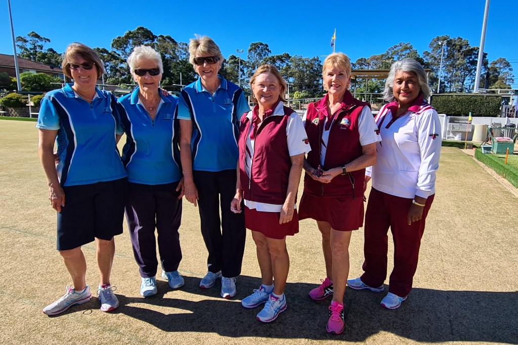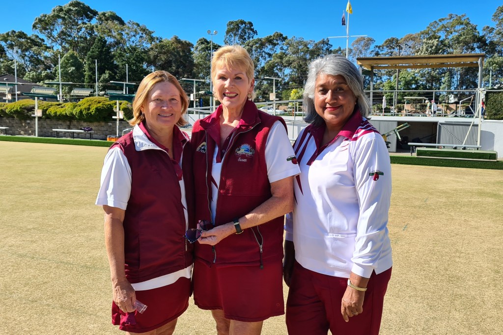 In brilliant sunshine but a chilly wind, the North Shore and Manly-Warringah District Triples Champions took to the green at Belrose in the Region 15 Play-Off. In the opening third of the match, the Neutral Bay team of Elizabeth Blackwell, Jenny Palmer and Jenny Hepburn found the pace of the green better than Harbord’s Benita Andrews, Susan Laidlaw and Virginia Longfellow. In particular, Elizabeth was consistently putting both Lead bowls within a foot of the jack, keeping Harbord under pressure. With the score 8-3 in “The Bay’s” favour, on the 7th end Harbord Skip Virginia drove twice but her bowls ran through the smallest of gaps leaving Elizabeth’s two bowls as shots, 10-3. Another single on the 8th, and Neutral Bay were leading 11-3. On the 9th end, Elizabeth again had both bowls within 8″; however, this time Susan managed to draw the jack away and then draw a second shot. This changed the fortunes of the Harbord team, who then went on to win the next four ends as well, to level the scores 11-11. With Harbord again holding on the 14th end, Neutral Bay skip Jenny Hepburn trailed the jack with her last bowl for a pick-up of 3 shots, 14-11. But Harbord quickly struck back. On the 15th end, Lead Benita drew inside Elizabeth’s by-now-customary close opener to sit only a couple of inches off the jack. Jenny Palmer hit the target with her first bowl but the luck didn’t ride with her, succeeding only in locking the jack onto Benita’s bowl. With her second, she hit again and, although Harbord were still holding, the jack had been sprung out into the open; however, it favoured Harbord, with skip Virginia drawing another shot, 14-13. On the 16th, once again Elizabeth’s bowl was right next to the jack until Susan sat it through for a possible multiple. Jenny Hepburn managed to hit the jack back to one of her own team’s bowls, but Virginia drew within a foot of the jack, a foot short of the ditch, to level the scores again 14-14. By now, the spectators were on the edge of their seats! The 17th end proved decisive for Harbord: after Elizabeth had hit the jack almost out-of-bounds Benita drew right up to it, then Susan drew an equally-impressive second shot. Neutral Bay couldn’t convert the head and, on a measure, Harbord scored 4 shots to hit the lead 18-14. Another 2 shots to Harbord on the 18th end increased their lead and, although Jenny Hepburn played some lovely draw bowls over the closing three ends, Neutral Bay was unable to stop Harbord taking the match 20-18.
